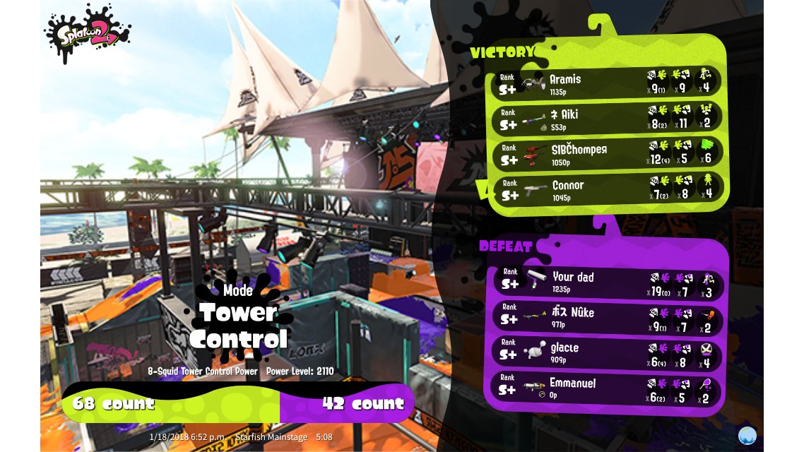 | Weapon | N-ZAP '85 ( Suction Bomb, Ink Armor) |