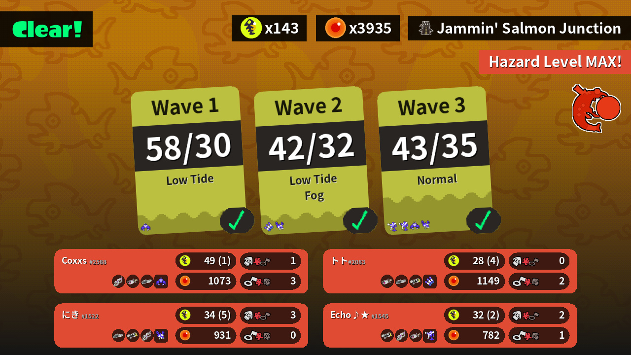 | Boss Salmonid | 30 | 21 | 20 | 22 |
