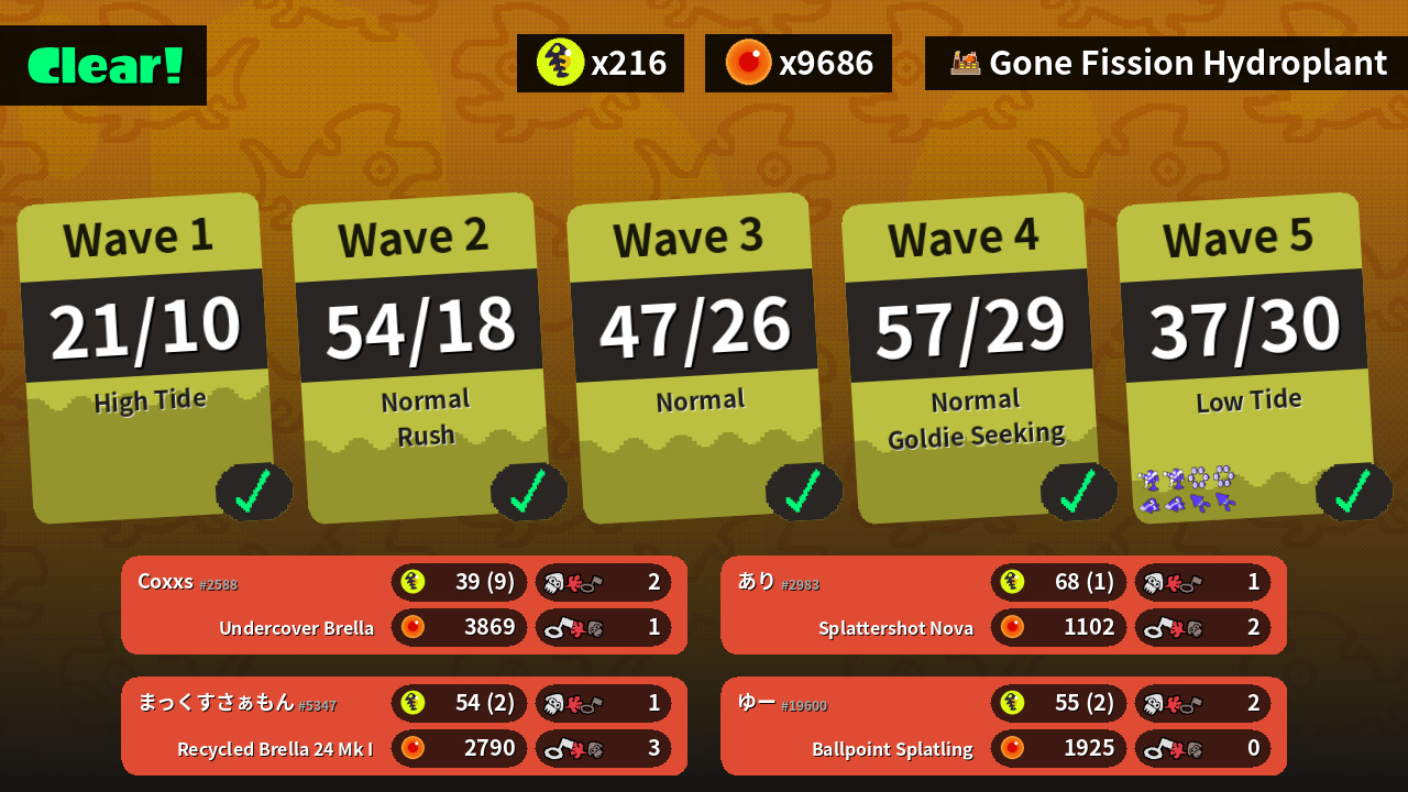| Weapons | Undercover Brella | Splattershot Nova | Ballpoint Splatling | Recycled Brella 24 Mk I |