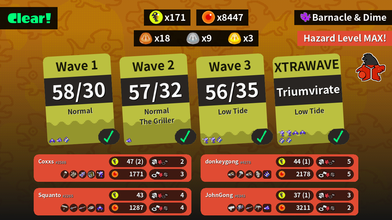 | Weapons | Octobrush Grizzco Dualies Glooga Dualies Grizzco Slosher | Grizzco Blaster Painbrush Grizzco Blaster Grizzco Stringer | Carbon Roller Snipewriter 5H Splat Charger Grizzco Brella | Splattershot Jr. Clash Blaster Splat Charger Grizzco Roller |