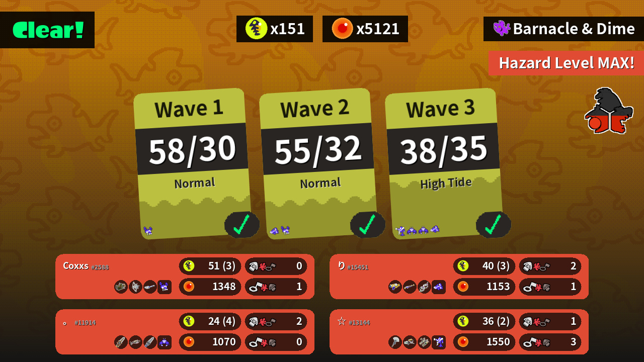 | Weapons | Explosher Tri-Stringer E-liter 4K | Splattershot Splat Charger Dark Tetra Dualies | Painbrush Grizzco Blaster Grizzco Dualies | Grizzco Splatana Grizzco Charger Splatana Stamper |