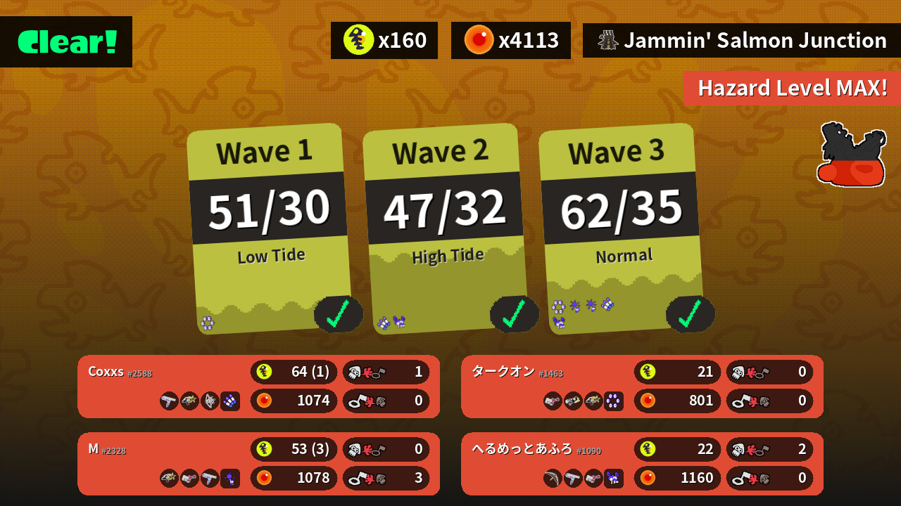 | Boss Salmonid | 19 | 33 | 20 | 19 |