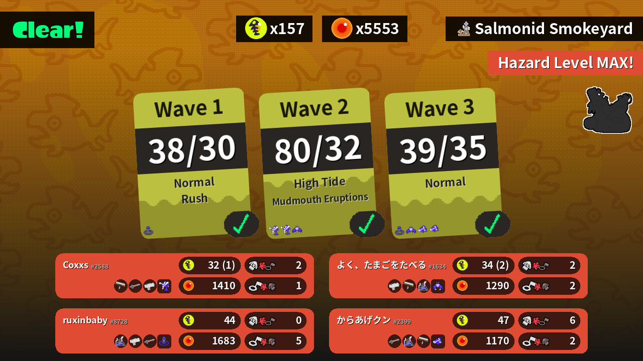 | Boss Salmonid | 19 | 19 | 14 | 8 |