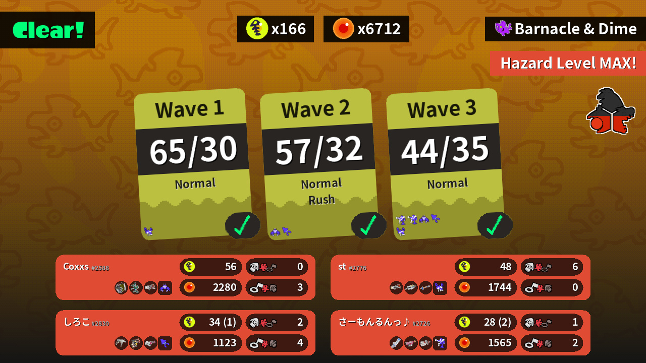 | Weapons | Grizzco Slosher Wellstring V Blaster | Range Blaster Grizzco Brella Snipewriter 5H | Grizzco Roller Douser Dualies FF Heavy Splatling | Mint Decavitator Rapid Blaster Pro Heavy Edit Splatling |
