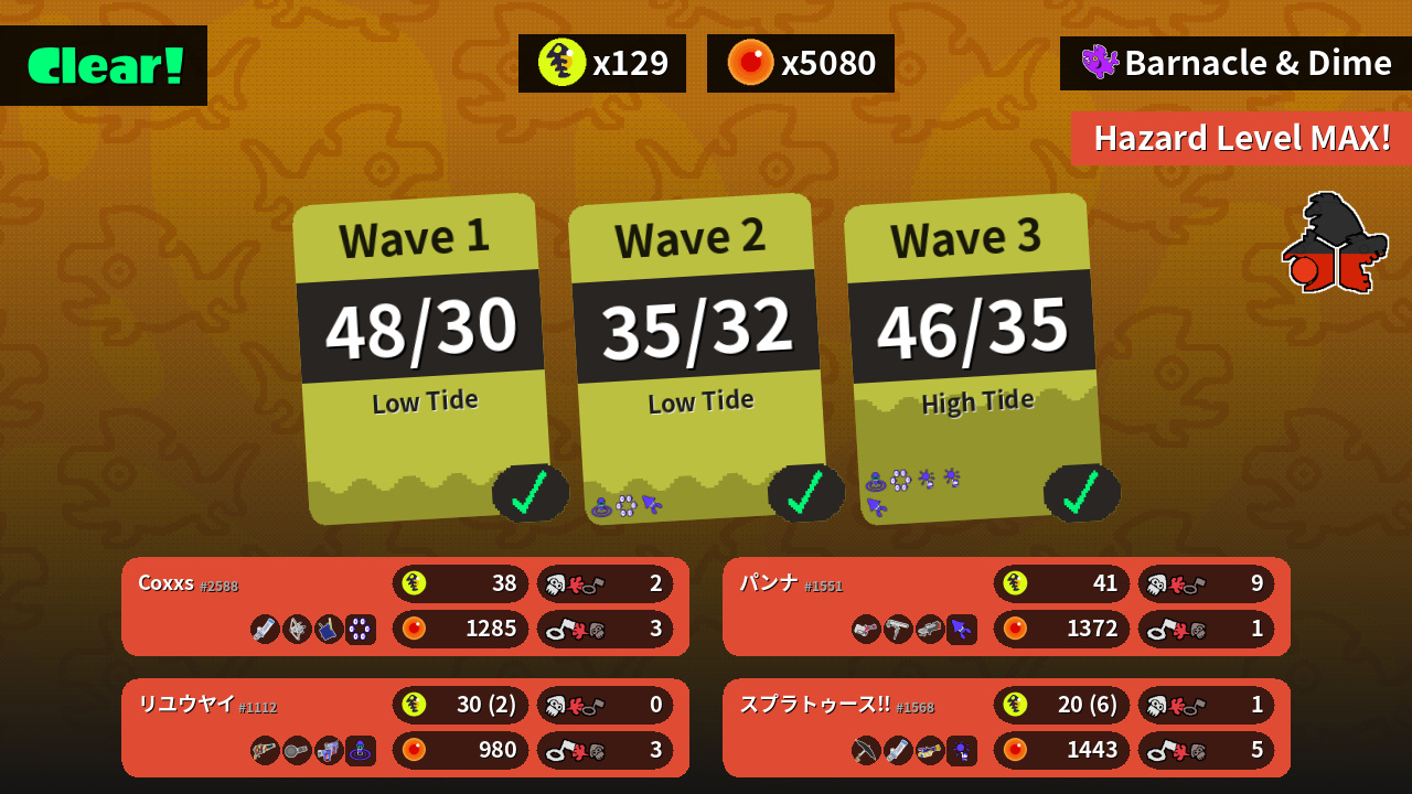 Coxxs | パンナ | リユウヤイ | スプラトゥース!! | |