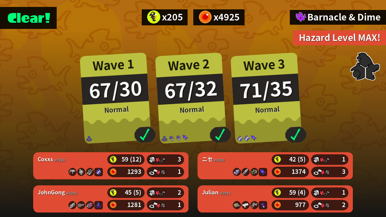 | Special | Triple Inkstrike (2) | Booyah Bomb (2) | Wave Breaker (2) | Kraken Royale (2) |