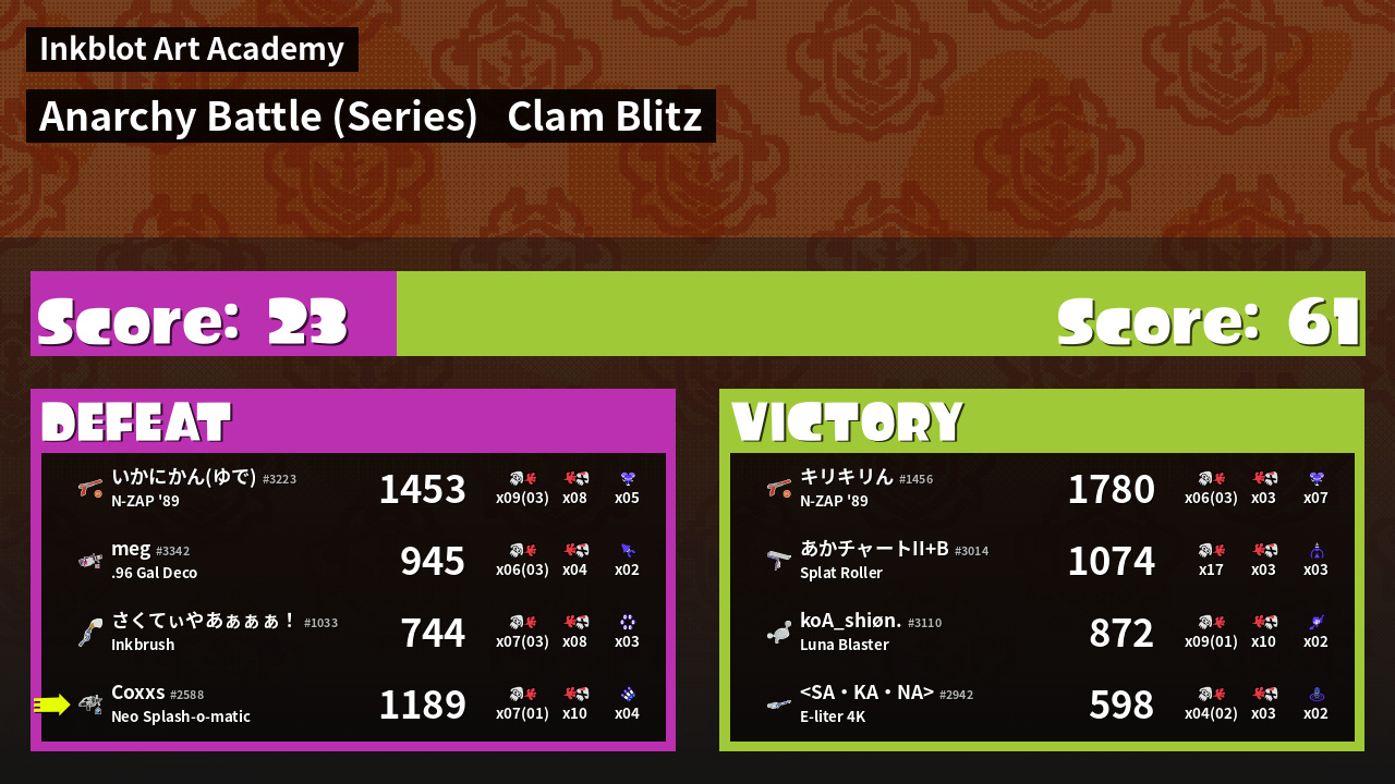 | Mode | Clam Blitz - Anarchy Battle (Series) | ||