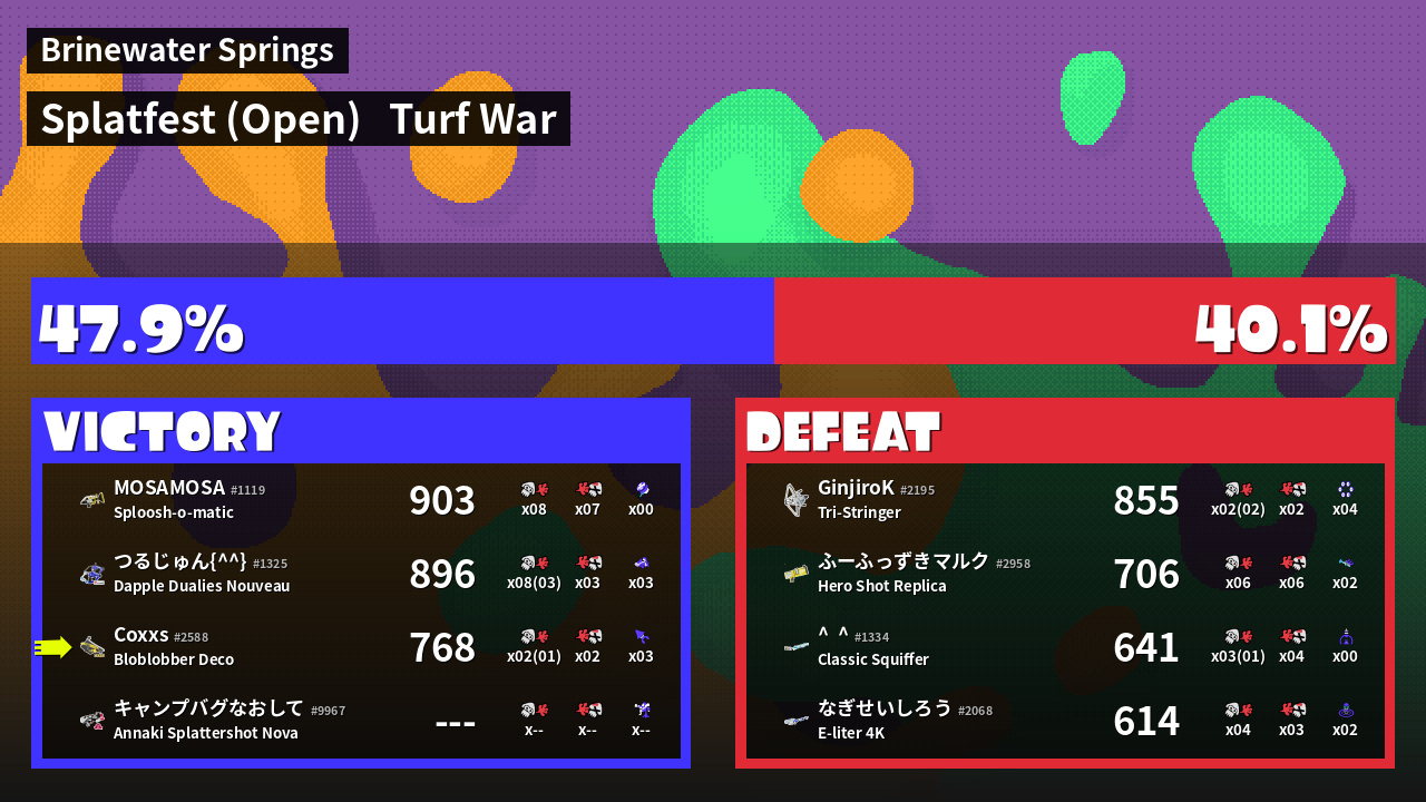 | Mode | Turf War - Splatfest (Open) | ||