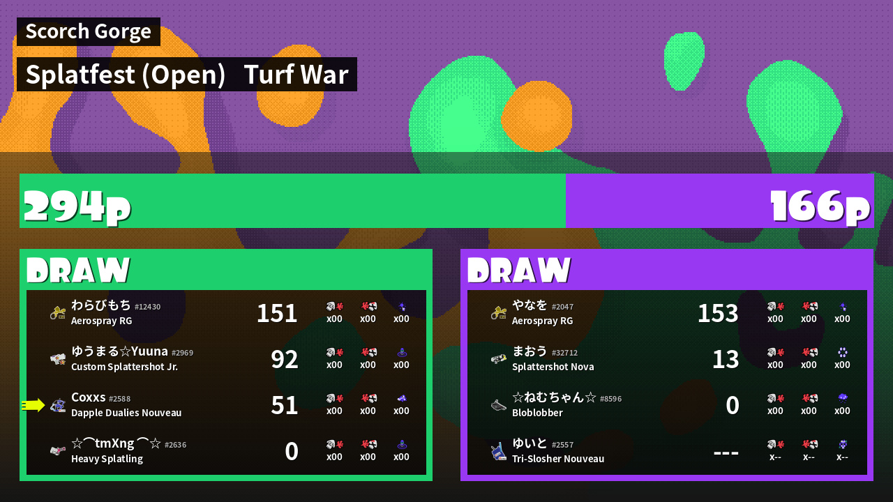 | Mode | Turf War - Splatfest (Open) | ||