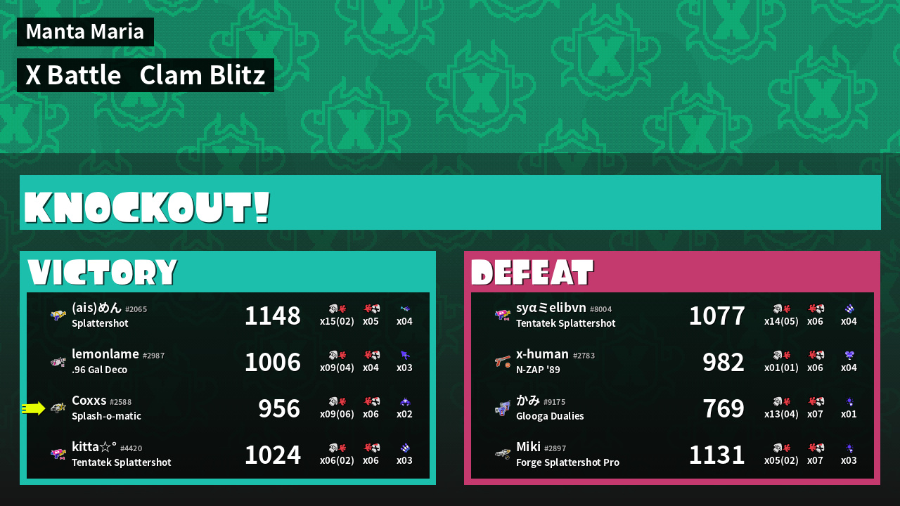 | Medals | #1 Super Jump Spot #1 Splat Assister #1 Damage Taker | ||