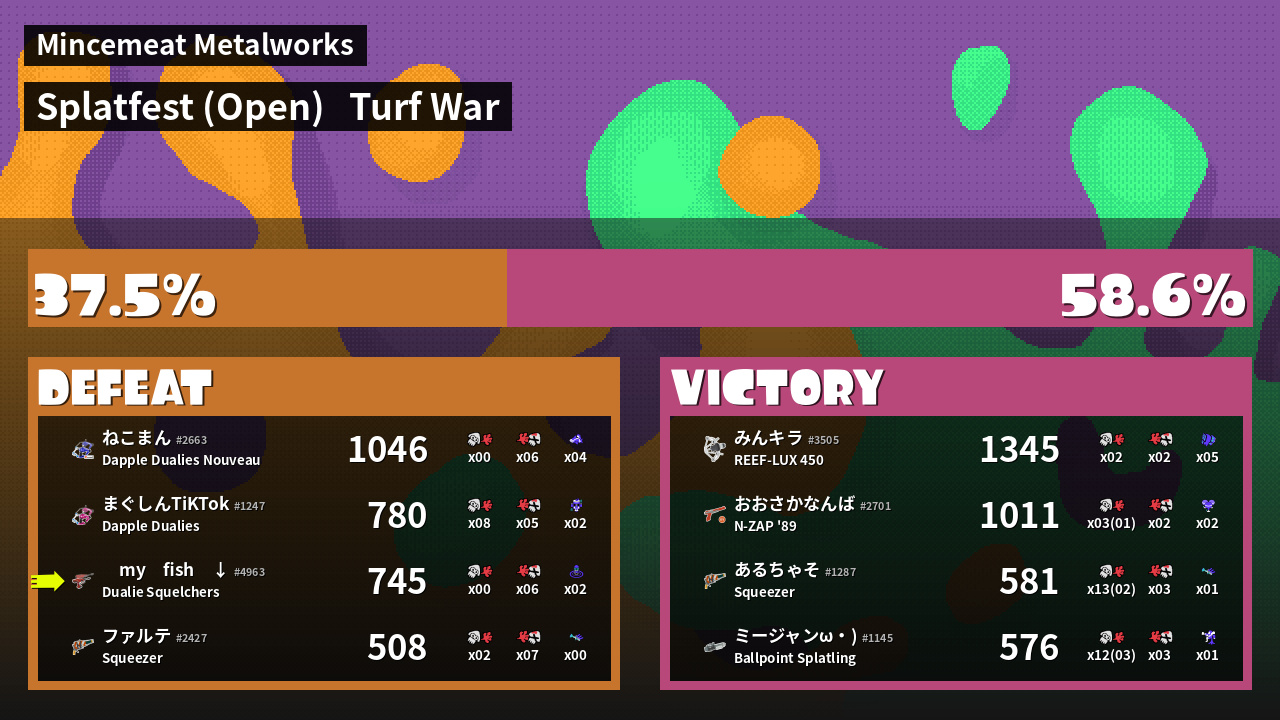 | Medals | #1 Damage Taker #1 Ink Consumer #2 Home-Base Inker | ||