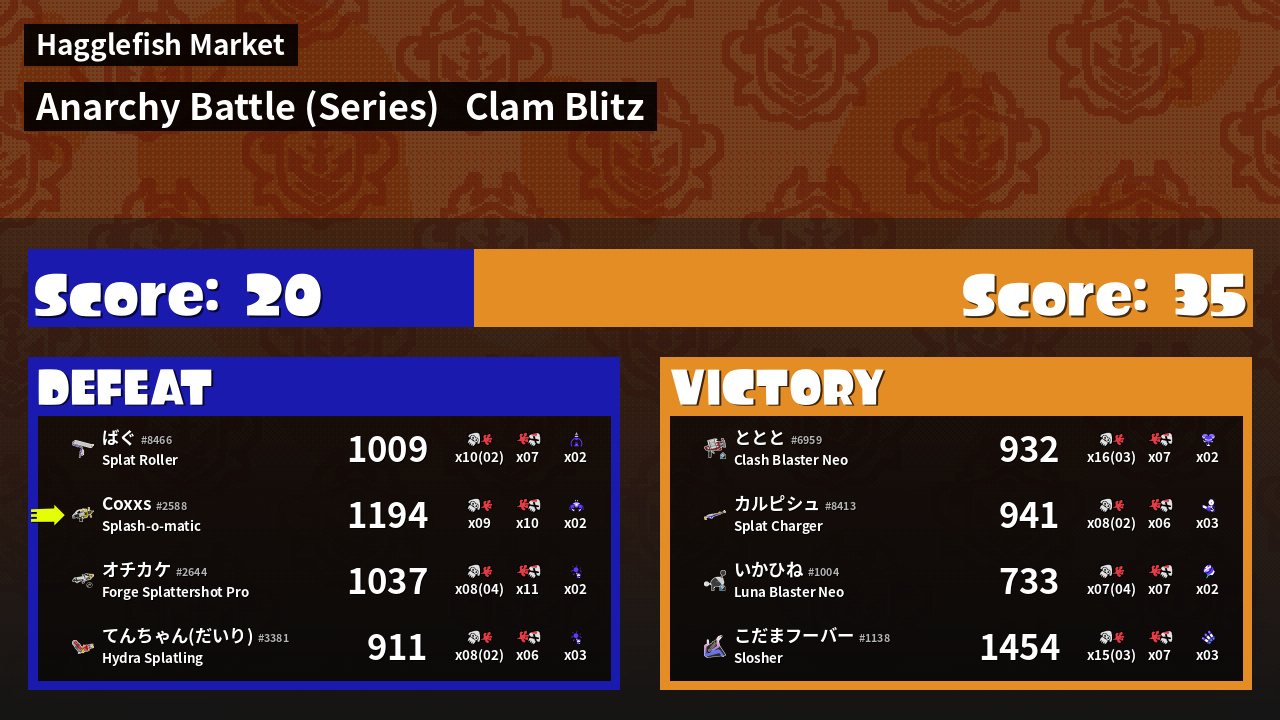 | Mode | Clam Blitz - Anarchy Battle (Series) | ||