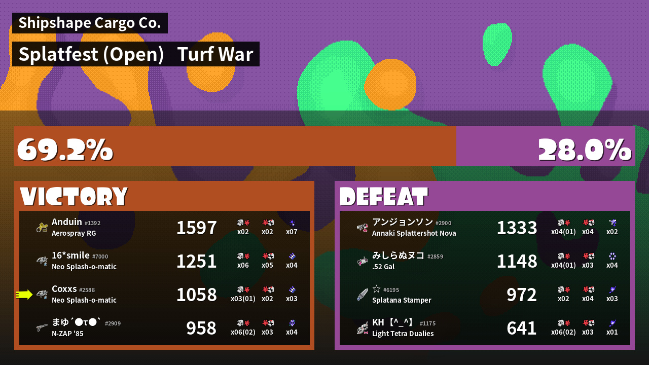 | Medals |   #1 Ink Consumer  #2 Splat Assister | ||