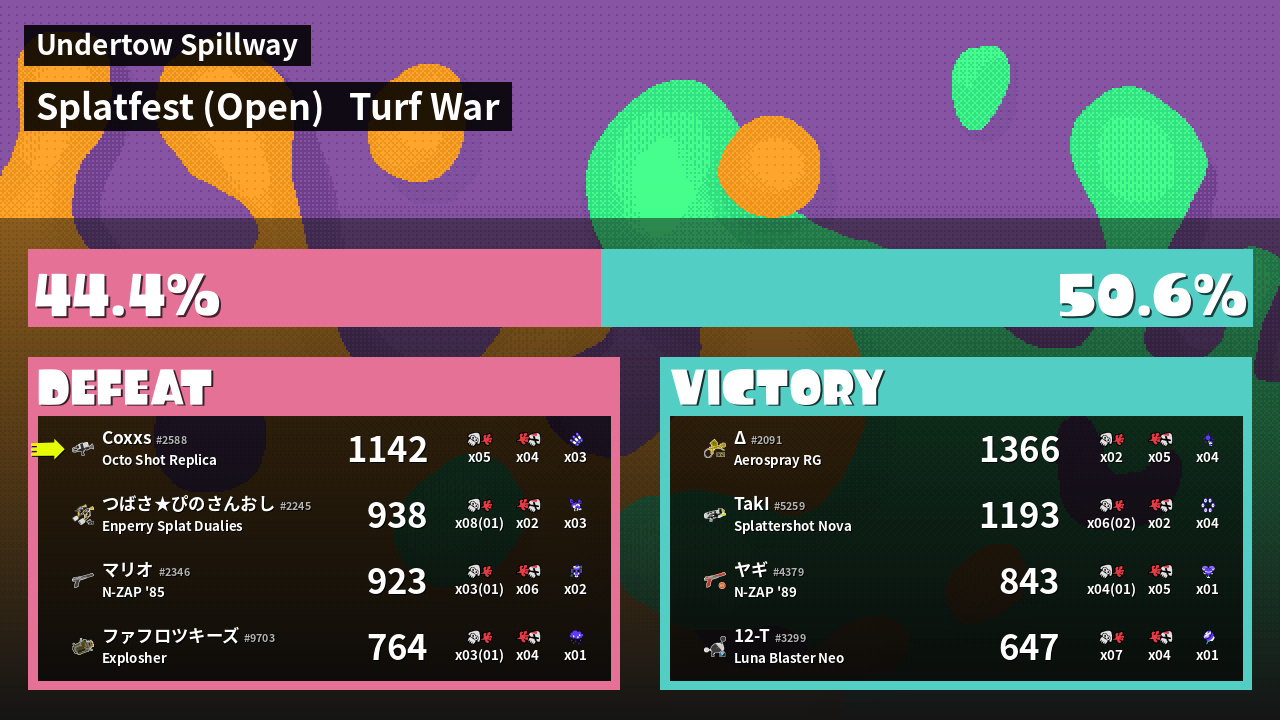 | Medals | #1 Turf Inker #1 Enemy-Base Inker #1 Super Jump Spot | ||