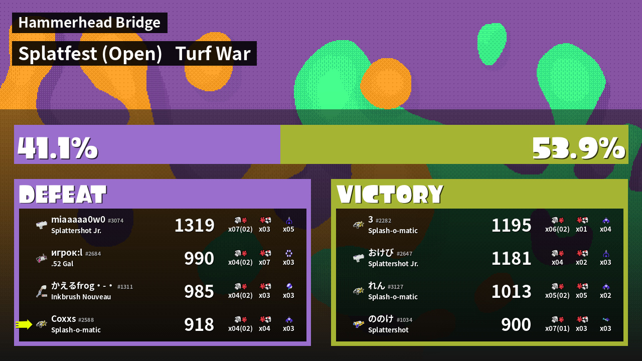 | Medals | #1 Home-Base Inker #1 Splat Assister #1 Ground Traveler | ||