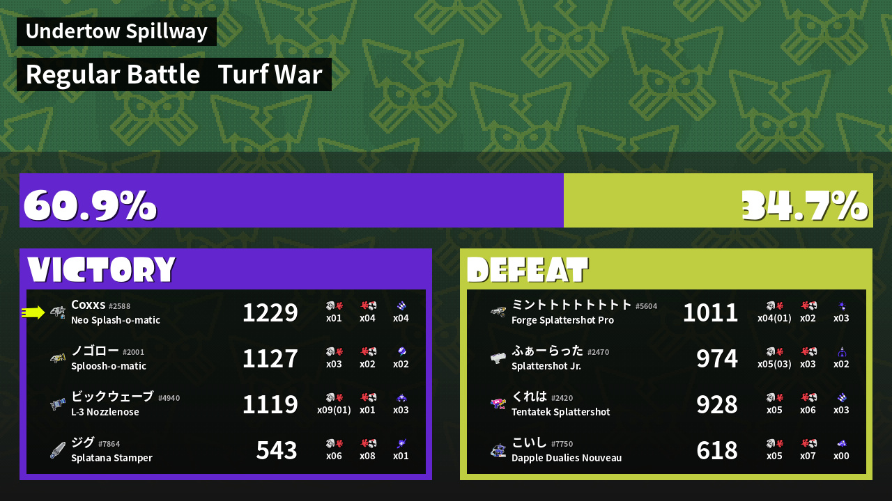 | Mode | Turf War - Regular Battle | ||