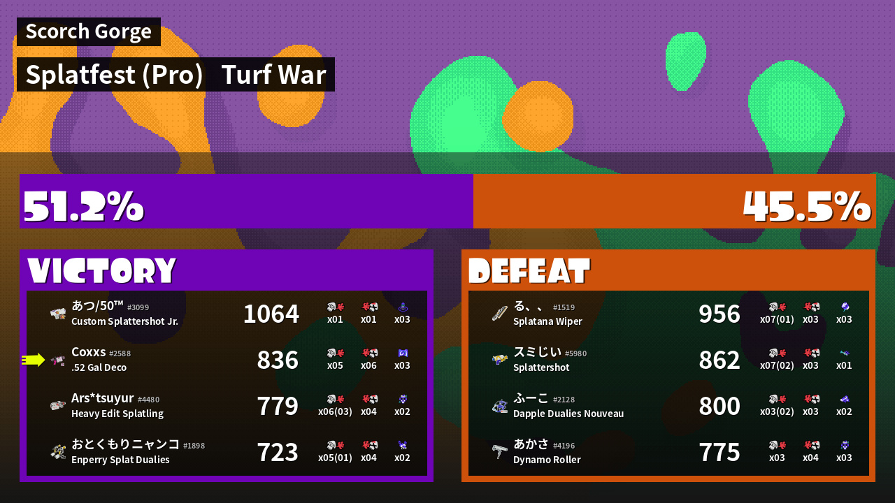 | Mode | Turf War - Splatfest (Pro) | ||
