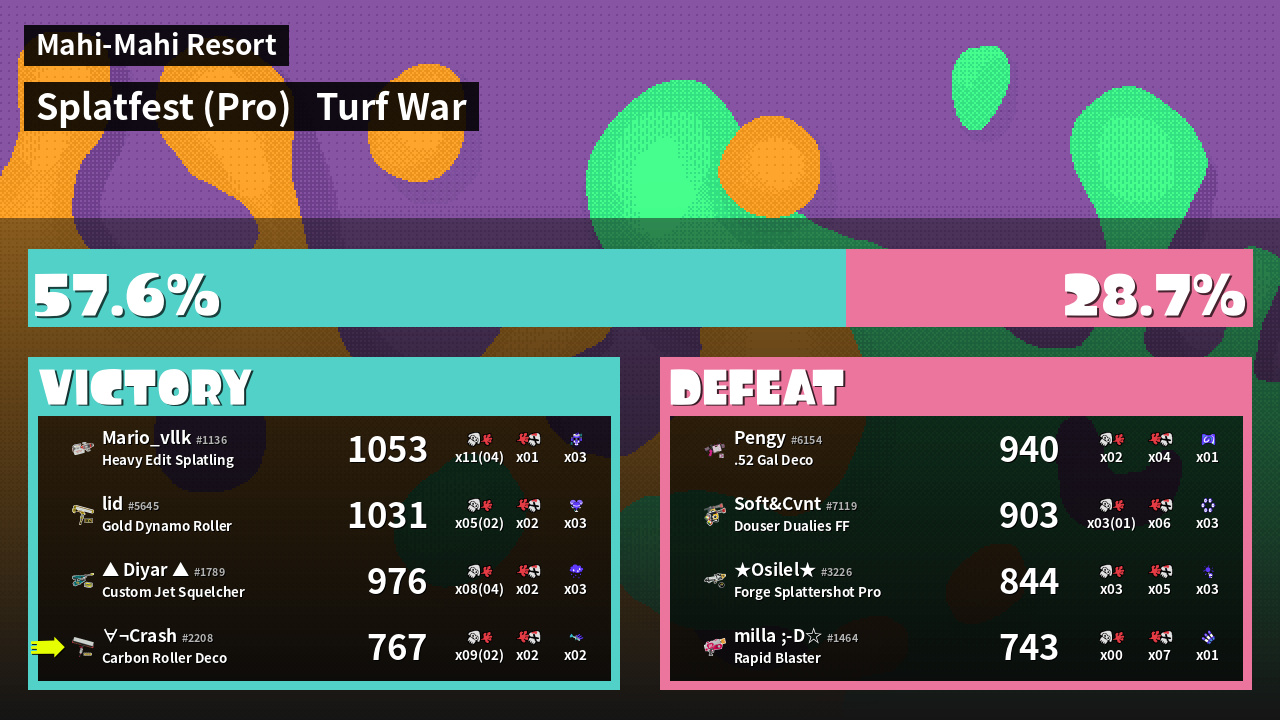 | Mode | Turf War - Splatfest (Pro) | ||