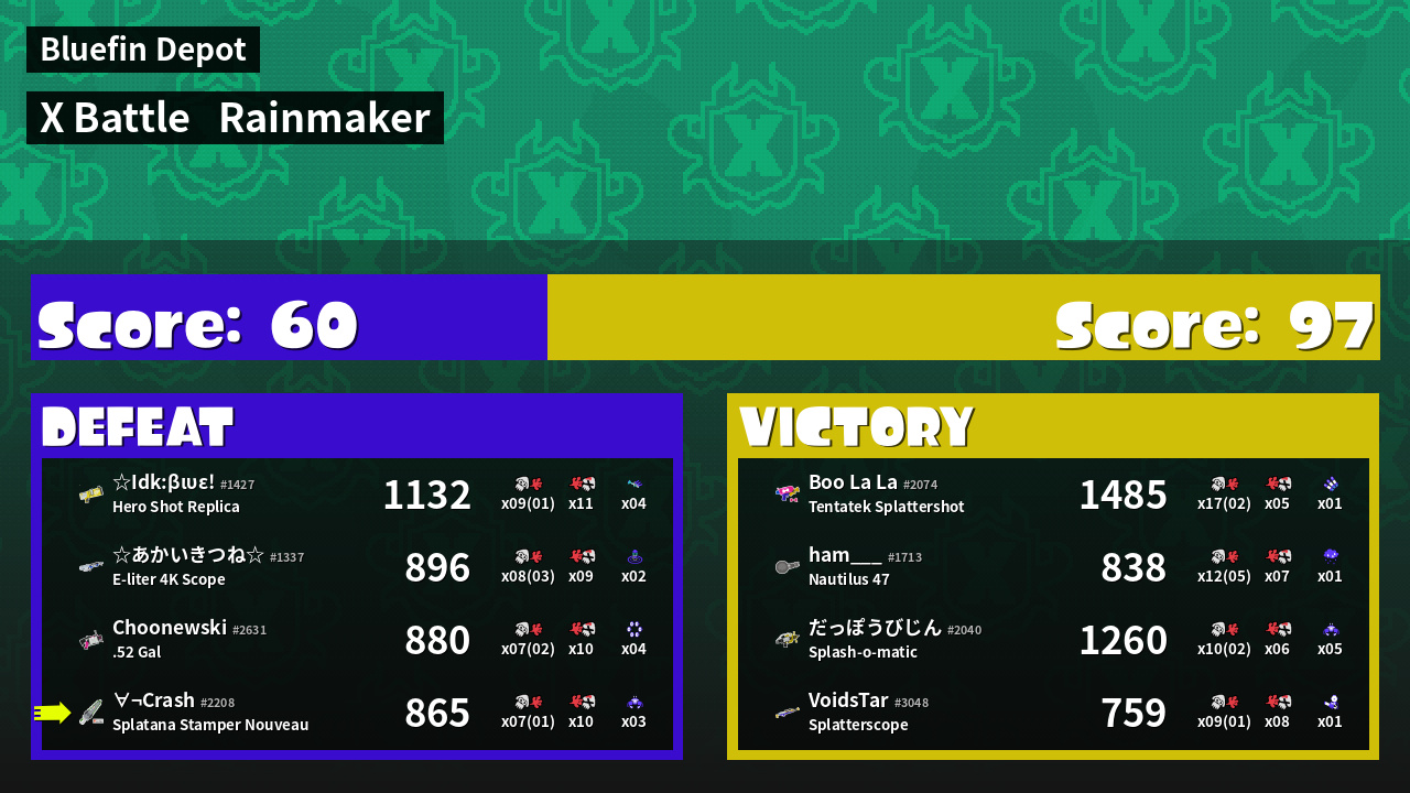 | Medals | #1 Ground Traveler #1 Damage Taker #1 Ink Consumer | ||
