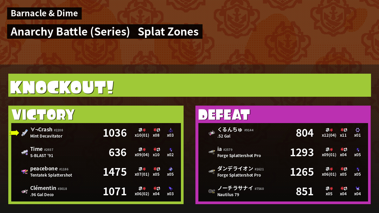 | Mode | Splat Zones - Anarchy Battle (Series) | ||