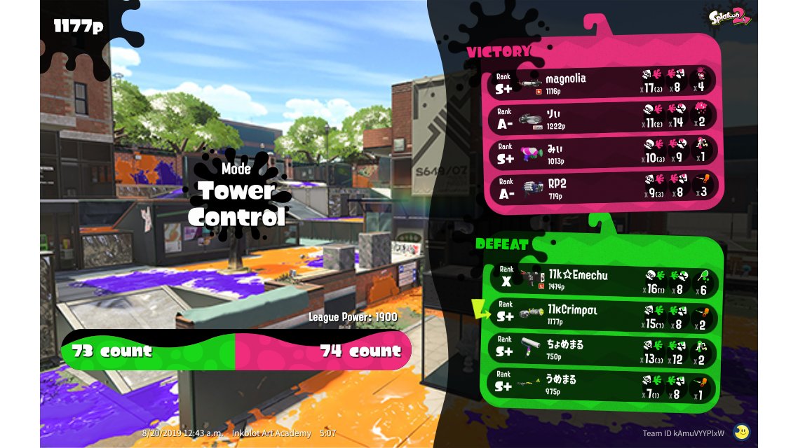| Mode | Tower Control - League Battle (Twin) | |||||||||||||||||||||||||||||||