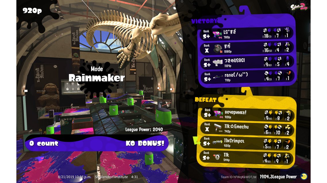 | Mode | Rainmaker - League Battle (Quad) | |||||||||||||||||||||||||||||||