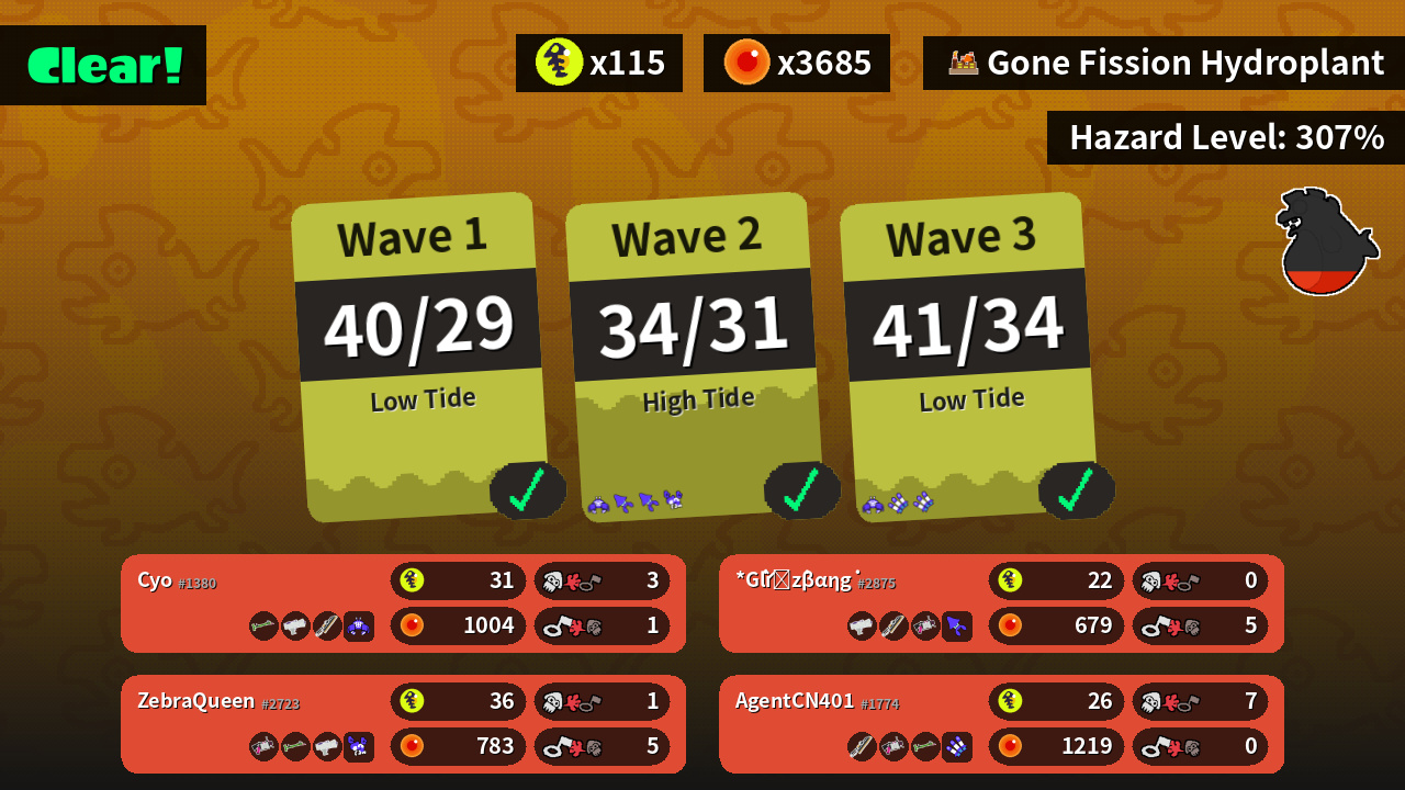 | Weapons | Bamboozler 14 Mk I Splattershot Jr. Splatana Wiper | .52 Gal Bamboozler 14 Mk I Splattershot Jr. | Splatana Wiper .52 Gal Bamboozler 14 Mk I | Splattershot Jr. Splatana Wiper .52 Gal |