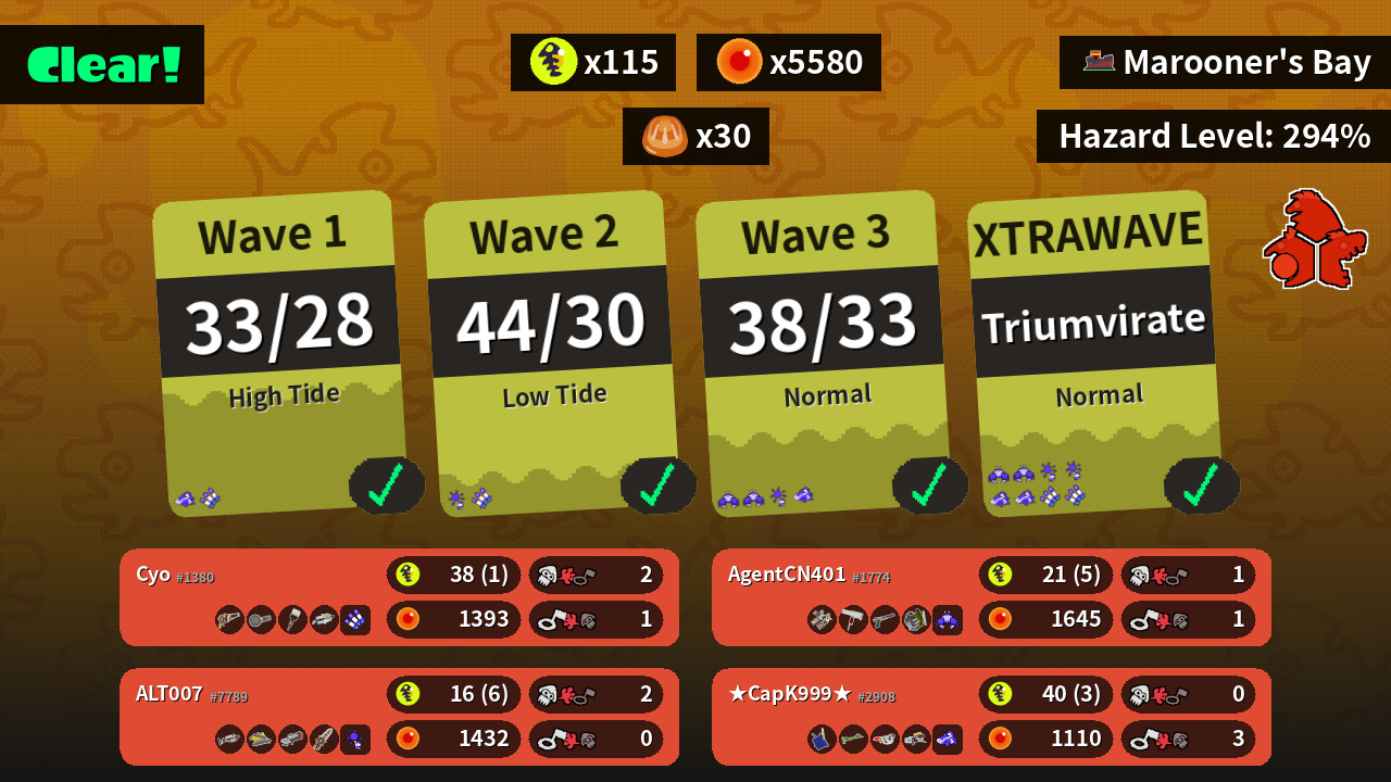 | Weapons | Squeezer Nautilus 47 Octobrush Grizzco Brella | Tri-Slosher Bamboozler 14 Mk I Goo Tuber Grizzco Blaster | Grizzco Dualies Flingza Roller N-ZAP '85 Grizzco Slosher | Grizzco Charger Dread Wringer S-BLAST '92 Grizzco Splatana |
