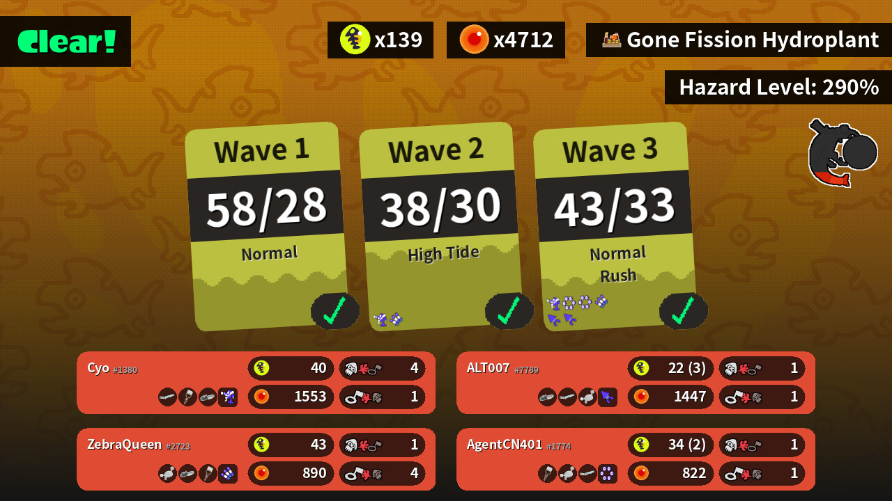| Weapons | Classic Squiffer Octobrush Ballpoint Splatling | Luna Blaster Ballpoint Splatling Octobrush | Octobrush Luna Blaster Classic Squiffer | Ballpoint Splatling Classic Squiffer Luna Blaster |