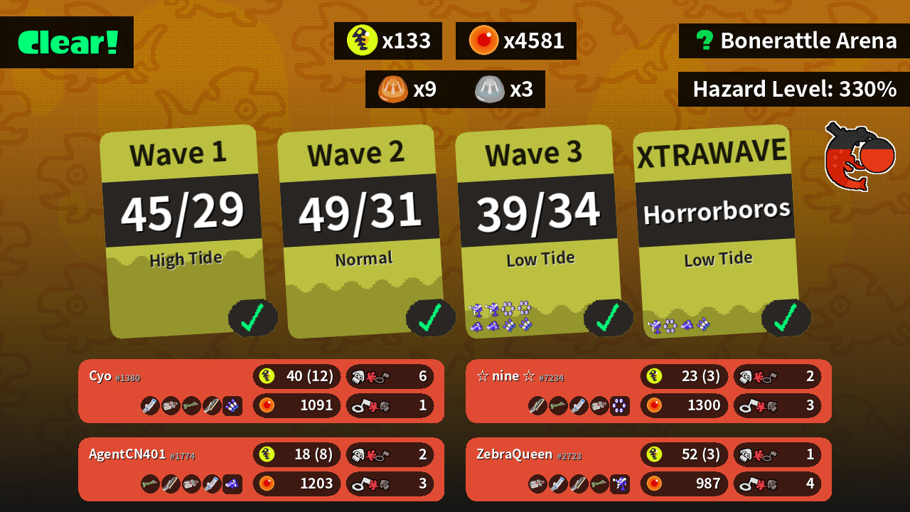 | Weapons | Mint Decavitator Heavy Edit Splatling Bamboozler 14 Mk I Splatana Wiper | Heavy Edit Splatling Mint Decavitator Splatana Wiper Bamboozler 14 Mk I | Splatana Wiper Bamboozler 14 Mk I Mint Decavitator Heavy Edit Splatling | Bamboozler 14 Mk I Splatana Wiper Heavy Edit Splatling Mint Decavitator |