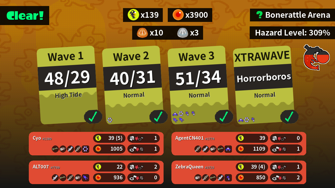 | Weapons | Bamboozler 14 Mk I Heavy Edit Splatling Mint Decavitator Splatana Wiper | Splatana Wiper Mint Decavitator Heavy Edit Splatling Bamboozler 14 Mk I | Heavy Edit Splatling Splatana Wiper Bamboozler 14 Mk I Mint Decavitator | Mint Decavitator Bamboozler 14 Mk I Splatana Wiper Heavy Edit Splatling |