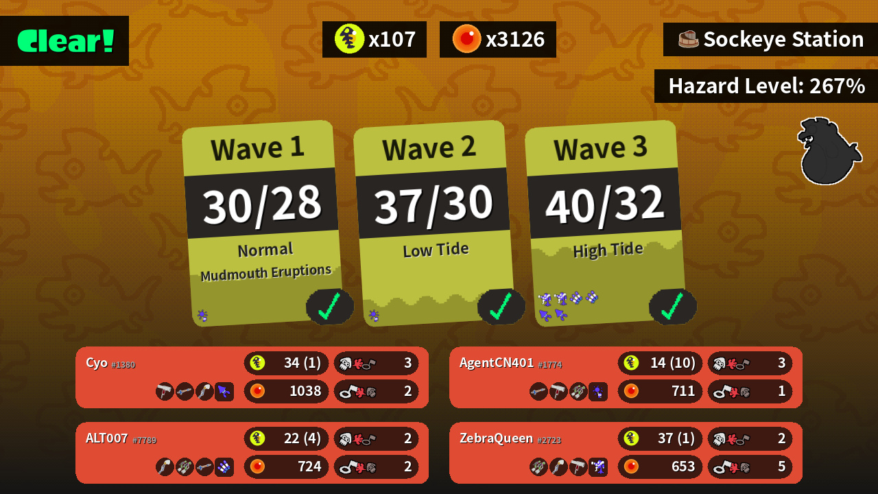 | Boss Salmonid | 14 | 10 | 17 | 16 |