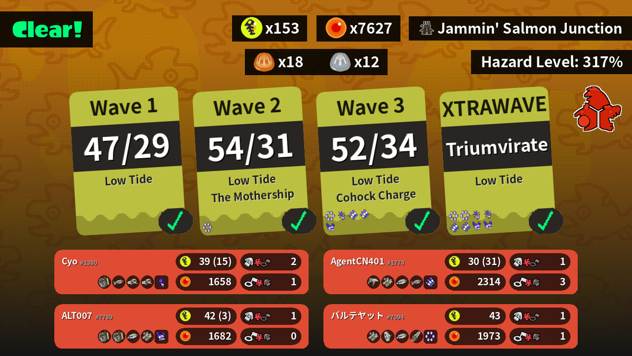 | Weapons | Grizzco Slosher Grizzco Charger Grizzco Blaster Grizzco Blaster | Grizzco Dualies Grizzco Stringer Grizzco Brella Grizzco Splatana | Grizzco Slosher Grizzco Slosher Grizzco Brella Grizzco Dualies | Grizzco Roller Grizzco Dualies Grizzco Brella Grizzco Charger |