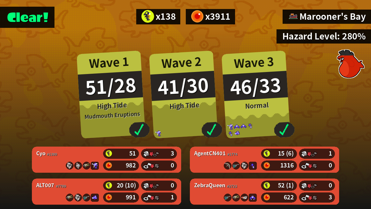 | Weapons | REEF-LUX 450 Tri-Stringer Sploosh-o-matic | Jet Squelcher Sploosh-o-matic Goo Tuber | Sploosh-o-matic REEF-LUX 450 Jet Squelcher | Tenta Brella Jet Squelcher REEF-LUX 450 |