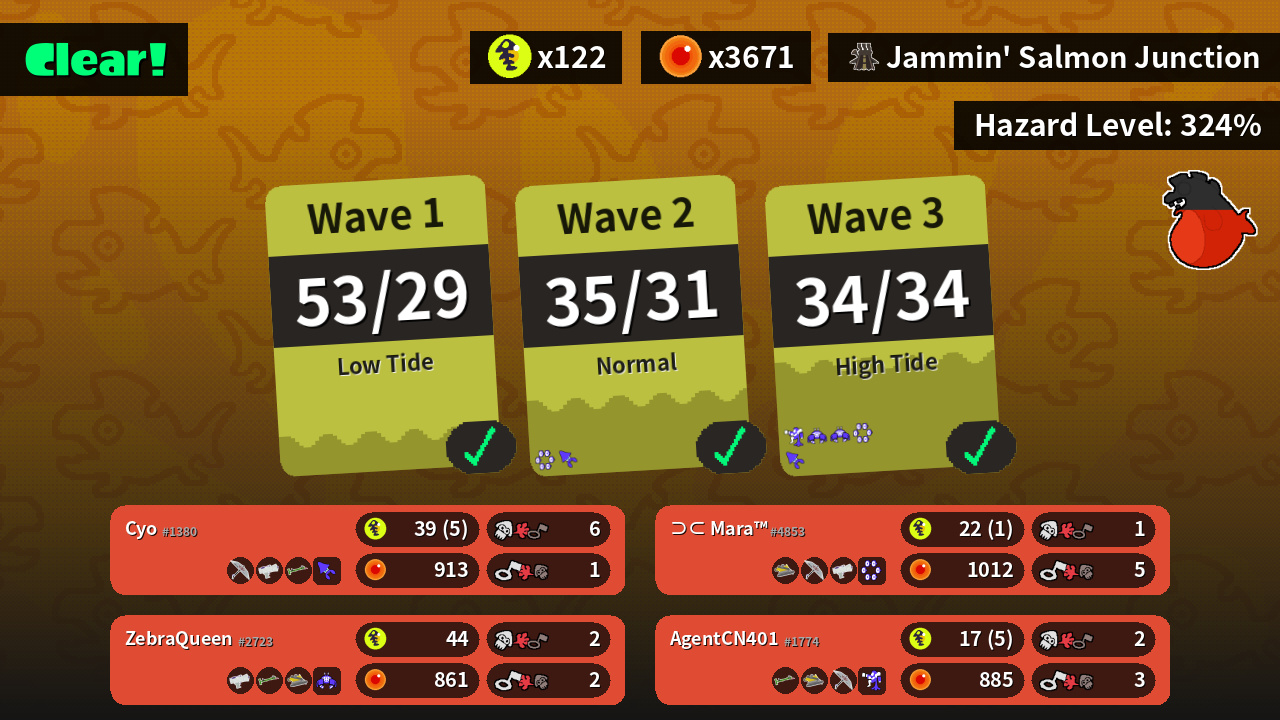 | Boss Salmonid | 25 | 17 | 21 | 16 |