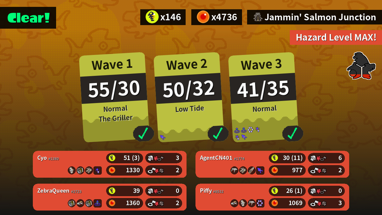 | Weapons | Grizzco Stringer Grizzco Slosher Grizzco Dualies | Grizzco Slosher Grizzco Blaster Grizzco Slosher | Grizzco Roller Grizzco Dualies Grizzco Splatana | Grizzco Blaster Grizzco Stringer Grizzco Roller |