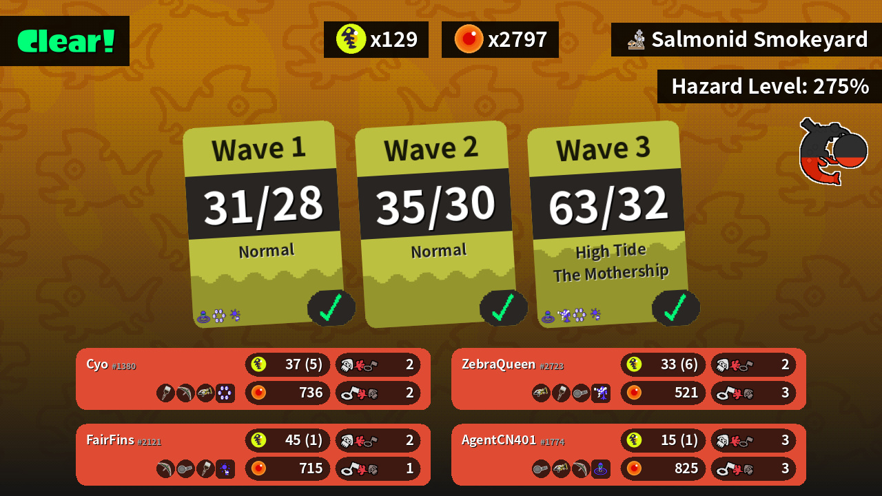 | Weapons | Octobrush Tenta Brella Sploosh-o-matic | Tenta Brella Nautilus 47 Octobrush | Sploosh-o-matic Octobrush Nautilus 47 | Nautilus 47 Sploosh-o-matic Tenta Brella |