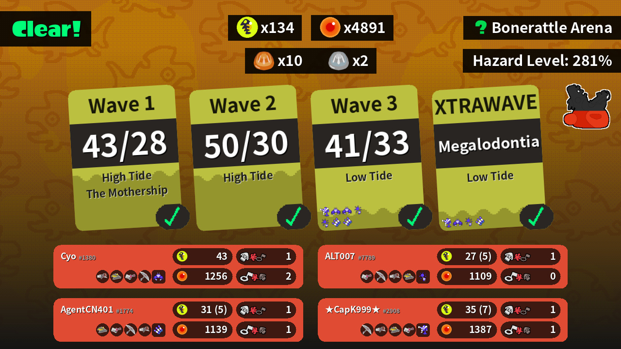 | Weapons | Blaster Dread Wringer Heavy Splatling Splat Brella | Splat Brella Blaster Dread Wringer Heavy Splatling | Dread Wringer Heavy Splatling Splat Brella Blaster | Heavy Splatling Splat Brella Blaster Dread Wringer |
