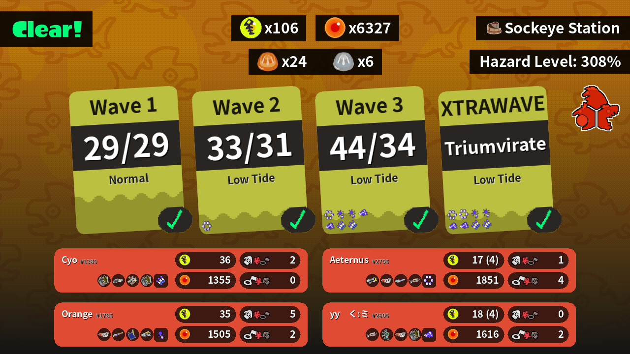 | Weapons | Grizzco Slosher Ballpoint Splatling Grizzco Dualies Grizzco Slosher | Goo Tuber Splat Charger Tri-Slosher Grizzco Blaster | Grizzco Charger Wellstring V Goo Tuber Grizzco Slosher | Splattershot Nova Goo Tuber E-liter 4K Grizzco Charger |