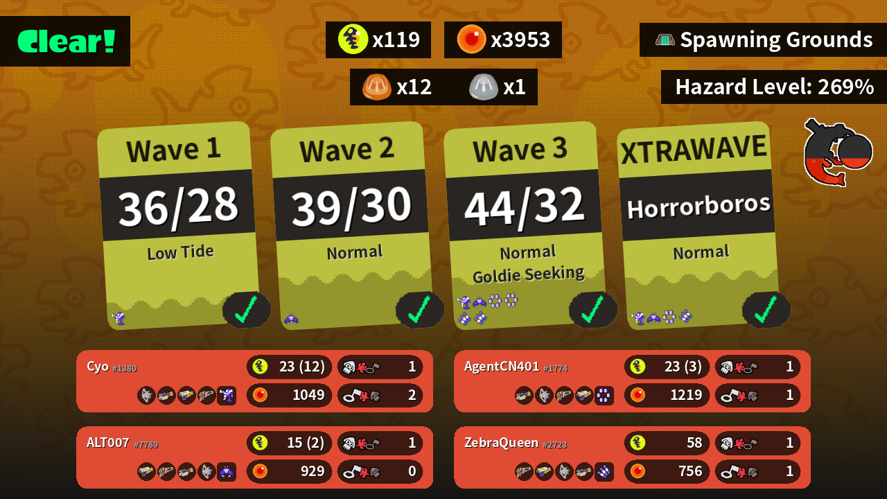 | Weapons | Tri-Stringer Mini Splatling Splattershot Squeezer | Squeezer Splattershot Tri-Stringer Mini Splatling | Mini Splatling Tri-Stringer Squeezer Splattershot | Splattershot Squeezer Mini Splatling Tri-Stringer |