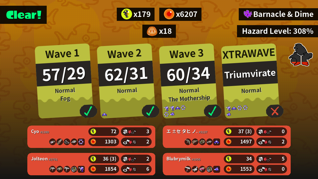 | Weapons | .96 Gal Grizzco Splatana Bloblobber Grizzco Brella | Tenta Brella Squeezer Explosher Grizzco Charger | Grizzco Roller Splash-o-matic Dynamo Roller Grizzco Slosher | Flingza Roller Luna Blaster Rapid Blaster Grizzco Slosher |
