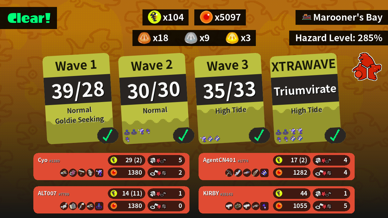 | Weapons | Grizzco Blaster Dapple Dualies Carbon Roller Grizzco Stringer | Splattershot Jr. Explosher Splattershot Jr. Grizzco Charger | Undercover Brella Mint Decavitator Splattershot Pro Grizzco Splatana | Luna Blaster Sloshing Machine Inkbrush Grizzco Blaster |