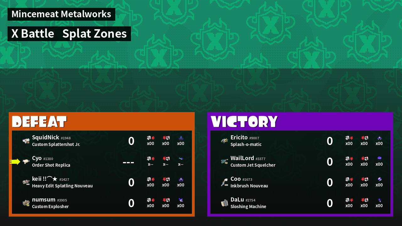| Mode | Splat Zones - X Battle | ||