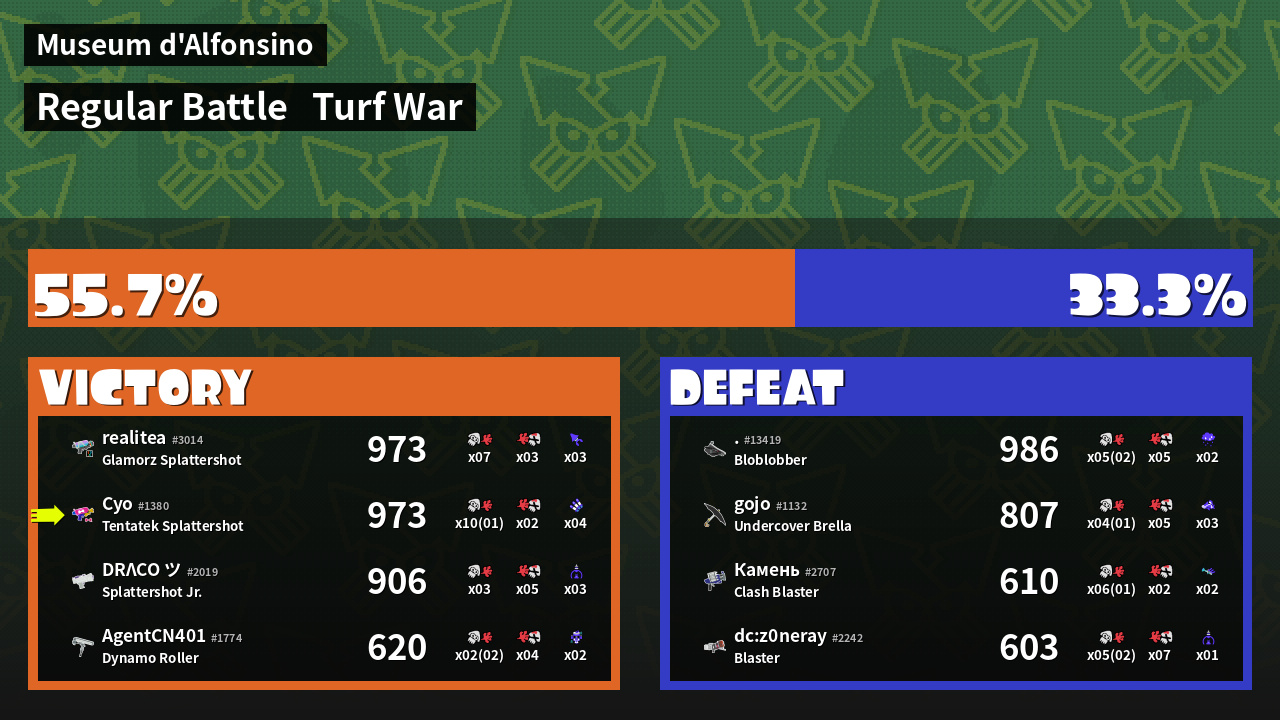 | Mode | Turf War - Regular Battle | ||