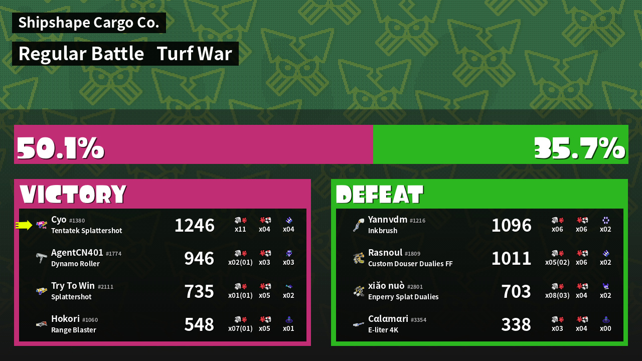 | Mode | Turf War - Regular Battle | ||