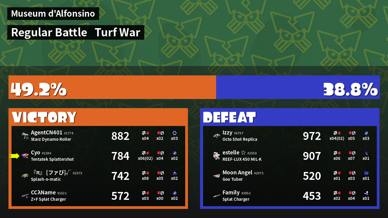 | Mode | Turf War - Regular Battle | ||