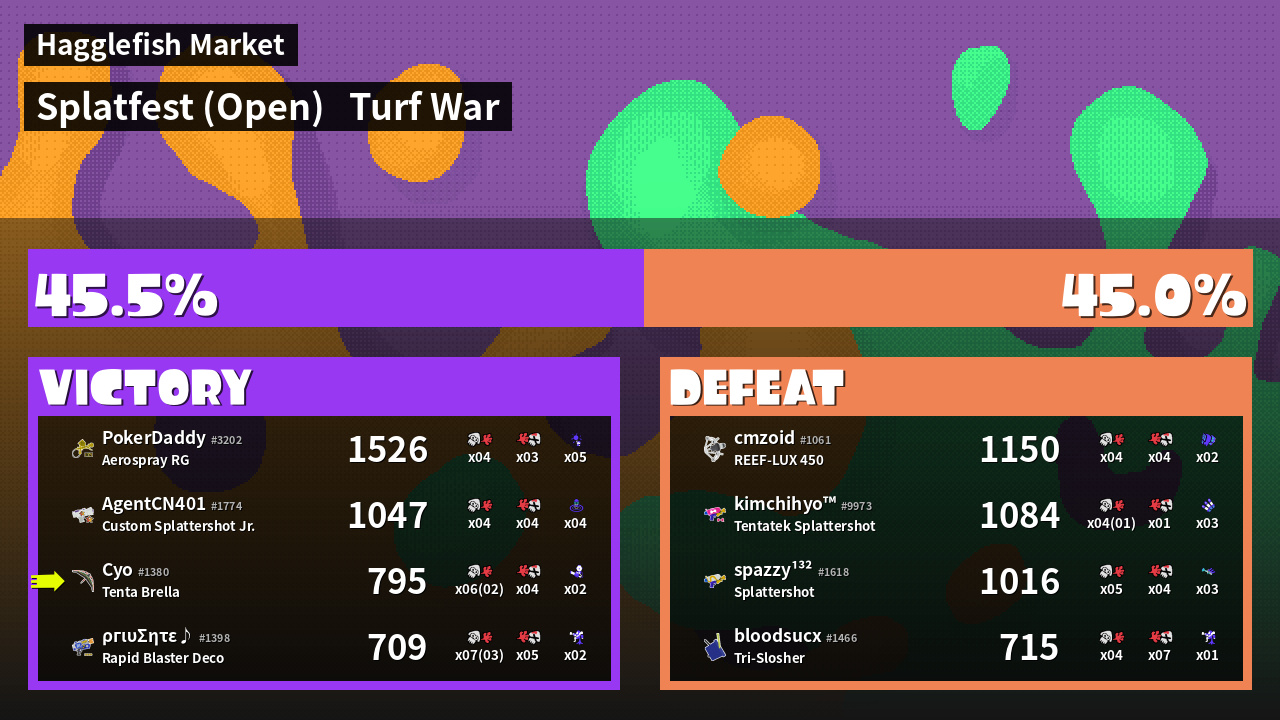 | Medals | #1 Enemy Splatter #1 Ground Traveler #2 Overall Splatter | ||