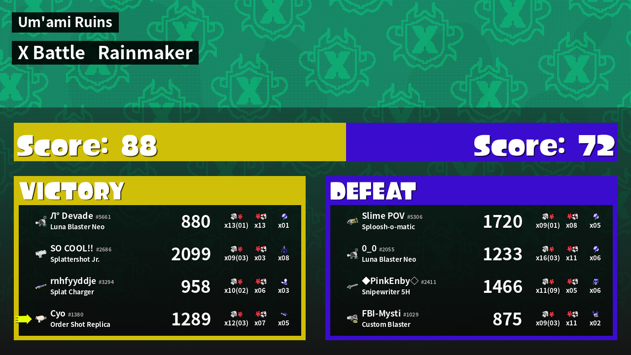 | Medals | #1 Splat Assister #1 Trizooka User #2 Overall Splatter | ||