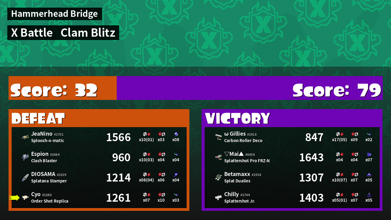| Medals | #1 Trizooka User #2 Turf Inker #2 Enemy Splatter | ||