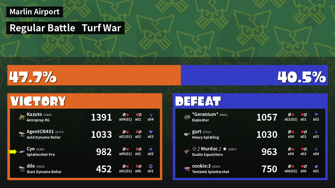 | Mode | Turf War - Regular Battle | ||